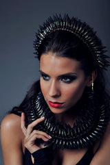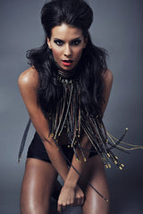 This powerful handmade jewellery collection, titled Spinnaker, is inspired by a nautical theme, which underpins Bláithín’s designs in previous collections. Her affinity with symmetry, geometric shapes and an admiration for historical body adornment is at the very core of ‘Spinnaker’. Bláithín’s unique approach to material manipulation has produced high end, intricate, striking design. With mixtures of delicate and robust heavy metals, sparkling crystal and soft whimsical shell mesh, her creations represent the ‘unconventional’ in accessories and jewellery.